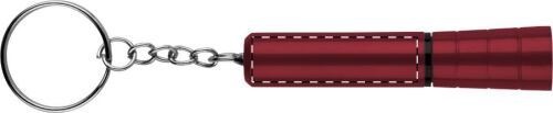 Mini torcia in plastica con 1 LED, finiture metalliche e portachiavi in metallo. Fornita di batteria a bottone.