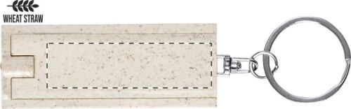 Portachiavi in plastica ecologica in paglia di grano con 1 torcia LED e anello in metallo. Batterie a bottone incluse.