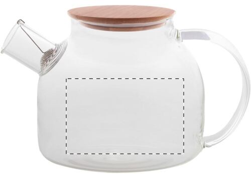 Teiera in vetro borosilicato con coperchio in bambù e filtro in acciaio inox, in scatola di cartoncino kraft. 1000 ml.