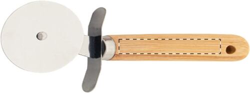 Set per servire la pizza in acciaio inossidabile da 3 pezzi con manico in bambù e comoda sacca in cotone con chiusura a coulisse. Il set è composto da una grattugia per formaggio, un taglia pizza ed una spatola.