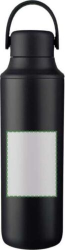 Borraccia in acciaio inox riciclato a doppia parete, con interno in acciaio inox 304 ed esterno in acciaio inox 201. Fornita con due tappi: un coperchio in PP con manica per il trasporto, ed uno in PS trasparente da utilizzare con la cannuccia in acciaio inox inclusa, con punta e supporto in silicone, capacità 500 ml, confezionata singolarmente in una scatola di cartone avana.