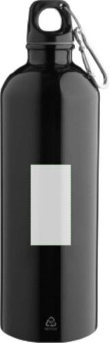 Borraccia in acciaio inox 304 riciclato a parete singola, coperchio in PP e moschettone in alluminio argentato. Presenta un logo inciso riciclato sulla parte anteriore. Capacità 750 ml.