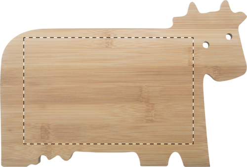 Tagliere in bambù a forma di mucca.