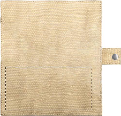Set di posate in bambù da 5 pz. in sacchetto di cotone, composto da forchetta, coltello, cucchiaio, cannuccia e spazzola per la pulizia.