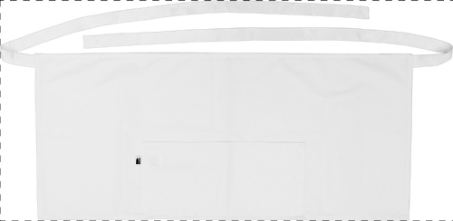 Grembiule da bistrot in poliestere 600D RPET personalizzabile, con tripla tasca frontale, grafica stampata in sublimazione su tutta la superficie ed etichetta RPET. MOQ: 25 pezzi.