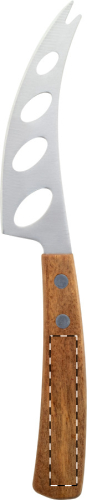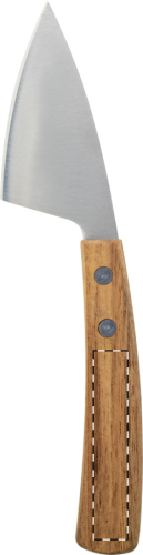 Set 3 coltelli da formaggio in acciaio inox con manici in legno di acacia. Confezione in scatola a forma di libro in cartoncino kraft.