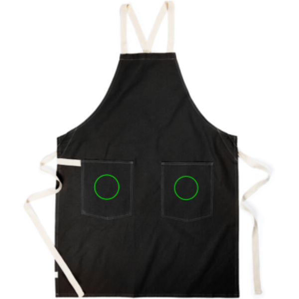 Grembiule realizzato con il 70% di cotone riciclato certificato proveniente dagli scarti di cotone. Le fibre che di solito sono considerate inutilizzabili hanno, con il processo di fabbricazione appropriato, raggiunto le proprietà desiderate. Questo grembiule è extra largo per fornire la massima protezione. Include due grandi tasche frontali e un passante per appendere gli utensili o uno strofinaccio.