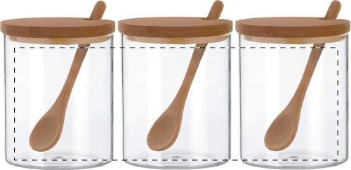 Barattolo porta spezie in vetro borosilicato con coperchio in bambù e cucchiaio, 300 ml. Ideale per conservare zucchero, spezie o noci.