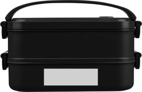 Lunchbox in PP con una capacità totale di 1600 ml, divisa in due strati da 800 ml. Presenta una valvola in silicone adatta all’uso nel microonde, una chiusura a fibbia e una maniglia per il trasporto in silicone. Confezionamento sfuso