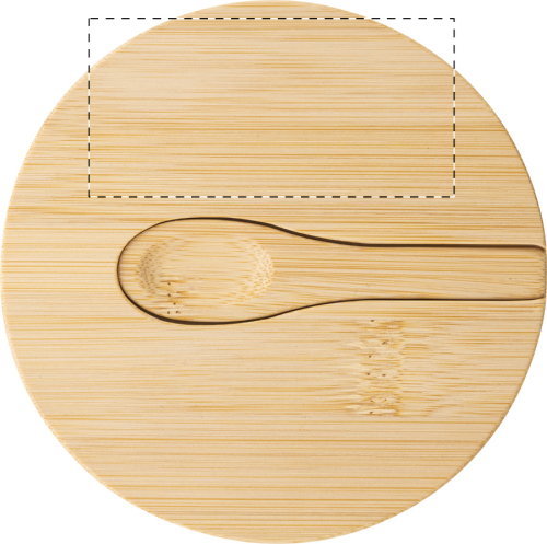 Contenitore porta sale e pepe in bambù con due scomparti e coperchio a rotazione magnetica e cucchiaio di servizio.