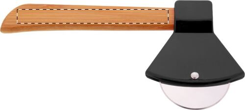 Taglia pizza a forma di ascia con manico in bambù e lama in acciaio inossidabile.
