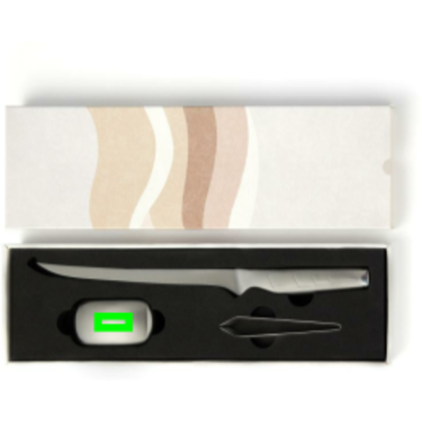 Coltello da filetto in acciaio giapponese 420J di alta qualità. Include una lama lunga, sottile e flessibile, perfetta per tagli precisi. Puoi usare il coltello per sfilettare il pesce o per affettare il prosciutto. Il set viene fornito con una saponetta metallica che rimuove gli odori di pesce e di aglio. La confezione include anche una pinzetta per rimuovere le piccole lische dal pesce. Il regalo perfetto per gli appassionati di cucina.