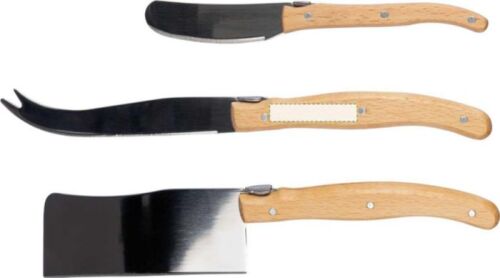 Set per salumi e formaggi in rPET in una custodia con chiusura in velcro 600D, inclusi tre coltelli in acciaio inox con manici in legno. Presenta un’etichetta rPET all’interno. Adatto per uso alimentare. Confezionato singolarmente in una scatola di cartone avana.