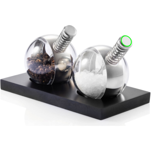 Sfere in acrilico con bordi in acciaio inossidabile, con facile meccanismo di funzionamento a molla, include vassoio in gomma e imbuto. Design registrato®