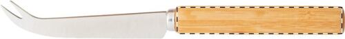 Set da formaggio in bambù con coltello in acciaio inox e tagliere in bambù. In scatola di carta kraft.