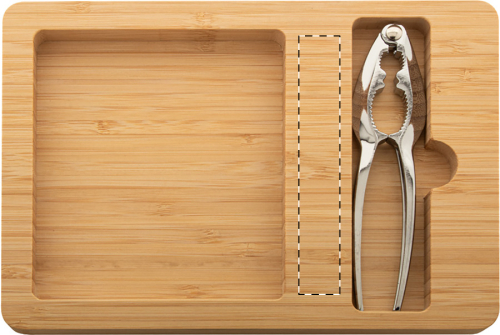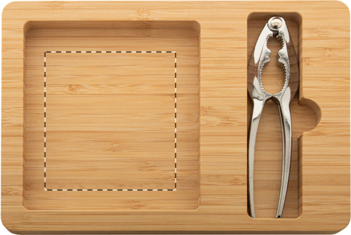 Set composto da vassoio in bambù e schiaccianoci in metallo. In scatola di carta kraft.