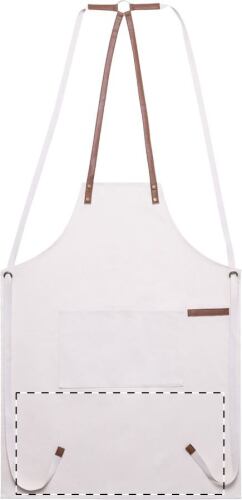 Grembiule in 100% cotone canvas con 2 tasche frontali, inserti in pelle PU e spalline regolabili. 340 g/m².