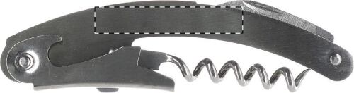 Set vino da 4 pz in acciaio inossidabile in scatola di bambù a forma di bottiglia. Il set si compone di cavatappi, salvagoccia, beccuccio e tappo.
