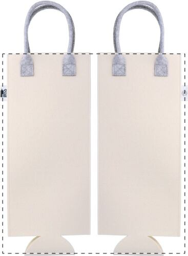 Borsa regalo per bottiglia di vino in feltro RPET personalizzabile con grafica stampata a colori ed etichetta RPET. Il costo comprende la stampa in sublimazione. MOQ: 25 pz.