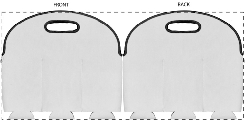Borsa porta lattine in neoprene RPET con manici, personalizzabile con grafica stampata in sublimazione su tutta la superficie. MOQ: 25 pezzi.