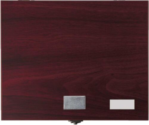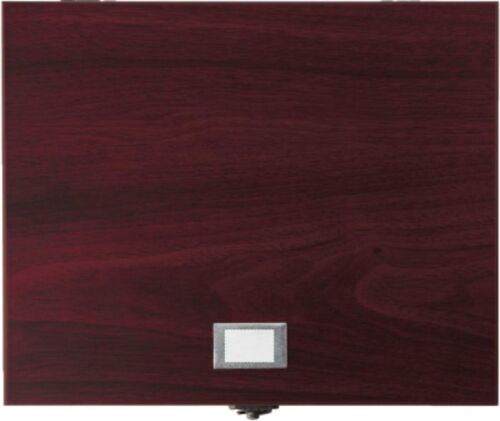 Set da vino in 9 accessori in acciaio inox, composto da due tappi per bottiglie, anello salvagoccia, beccuccio versatore, termometro, taglia-pellicola, imbuto e cavatappi, confezione regalo in legno