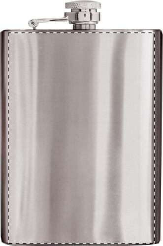 Fiaschetta in acciaio inossidabile 230 ml. con 2 bicchierini e un imbuto. In confezione regalo nera.