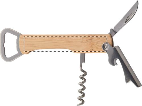 Apribottiglie e cavatappi in acciaio inox con manico in bambù.