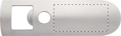 Apribottiglie in metallo confezionato in una scatolina di cartoncino nero.