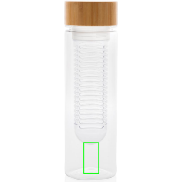 Bottiglia di alta qualità in Tritan con tappo in legno. La bottiglia include un infusore in modo che tu possa aromatizzare l'acqua con qualsiasi frutta o erba a tua scelta. Capacità 640ml, Non contiene BPA.