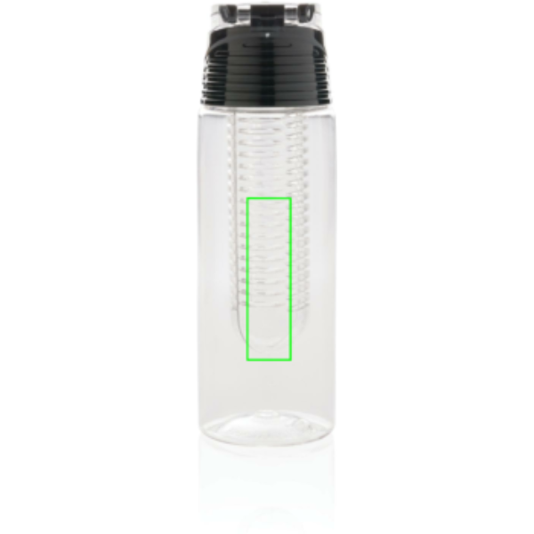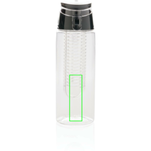 Bottiglia infusore per insaporire l’acqua con la tua frutta preferita. Realizzata in Tritan antigraffio. Tappo in ABS con sistema di chiusura per poterla portare dove vuoi. Capacità 700 ml.