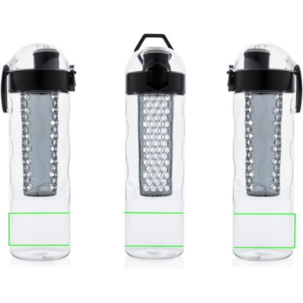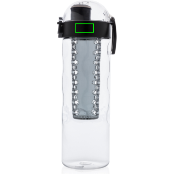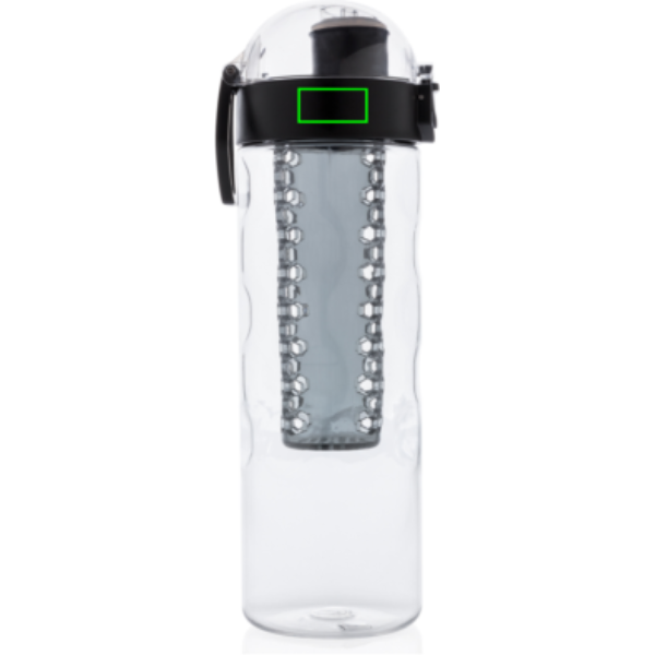 Aggiungi un aroma di frutta alla tua acqua. Questa botttiglia con particolari a nido d'ape ti permette di bere con una sola mano. Schiacciando il bottone il coperchio si apre automaticamente. C'è uno speciale meccanismo di chiusura che previene aperture del tappo accidentali. Include manico. La bottiglia è in durevole e innovativo tritan. E' inodore e non contiene BPA. Capacità 700 ml. Design registrato®