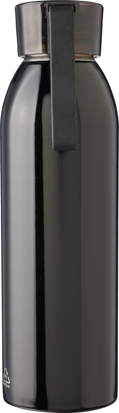 Borraccia in acciaio inox 304, singola parete, coperchio in PS, cinturino in silicone, include il logo “acciaio inox riciclato” sulla borraccia, confezionata singolarmente in una scatola in cartone avana, capacità 650 ml