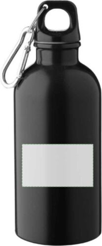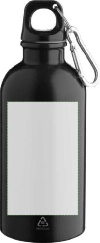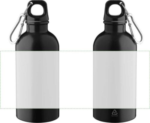 Borraccia in acciaio inox 304 riciclato a parete singola, coperchio in PP e moschettone in alluminio argentato. Presenta un logo inciso riciclato sulla parte anteriore. Capacità 400 ml.
