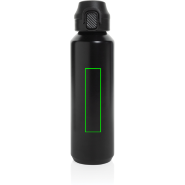 La bottiglia Via è realizzata in acciaio 304 riciclato certificato RCS. E' caratterizzata da una struttura a parete singola con un esclusivo coperchio avvitabile e bloccabile a prova di perdite. Si utilizza con una sola mano. Basta premere il bottone per aprire il coperchio e sorseggiare facilmente. Può essere utilizzata solo per bevande fredde. Realizzata con materiali riciclati certificati RCS (Recycled Claim Standard). La certificazione RCS garantisce una catena di approvvigionamento dei materiali riciclati completamente certificata. Contenuto totale di materiale riciclato: 73% in base al peso totale dell'articolo. Senza BPA. Confezionata sfusa. Capacità 600 ml.