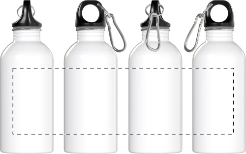 Borraccia in acciaio riciclato ideale per la stampa in sublimazione con capacità di 400ml e moschettone in alluminio.