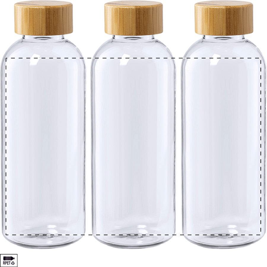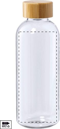 Borraccia da 600ml. in RPET non contenente BPA con tappo in bambù. Non adatta per l'utilizzo con bevande gassate.