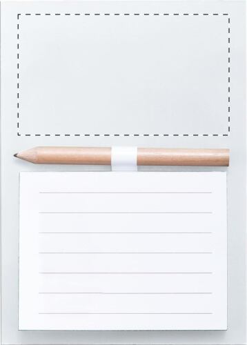 Magnete frigorifero colorato con blocco note da 40 fogli e mini matita in legno.