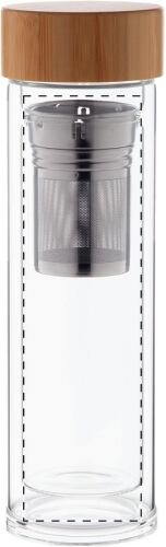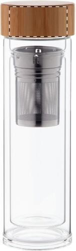 Borraccia da 420ml. in vetro borosilicato a doppia parete con infusore per tè e tappo in bambù.
