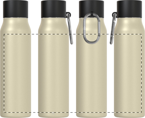 Borraccia in acciaio riciclato a doppia parete da 500ml. Con tappo in PP e moschettone in alluminio riciclato.