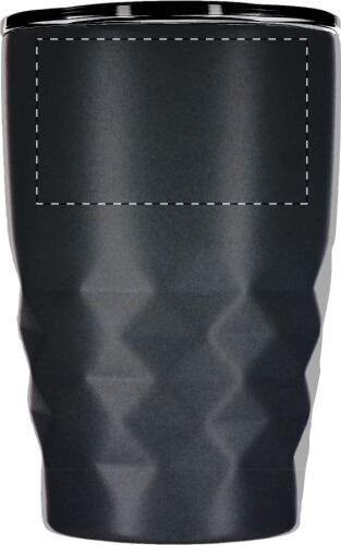 Mug termico da 350ml. in acciaio a doppia parete con tappo erogatore in plastica ed isolamento in rame che permette di mantenere il contenuto caldo per 12 ore e freddo per 24 ore.