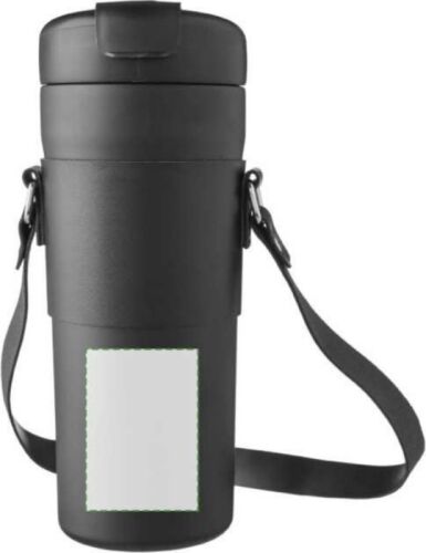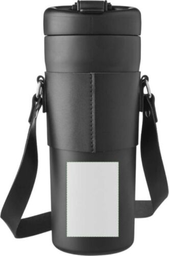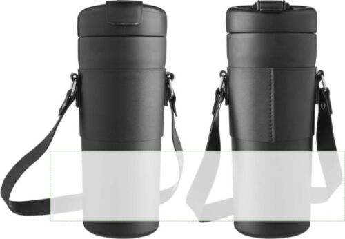 Borraccia in acciaio inox 304 (esterno acciaio inox 201), doppia parete, custodia in PU, cannuccia e tracolla, coperchio in PP con pulsante per aprire o chiudere il beccuccio e apertura separata per bere, mantiene il contenuto caldo per 6 ore e freddo per 10 ore, confezionato singolarmente in una scatola in cartone avana, capacità 730 ml