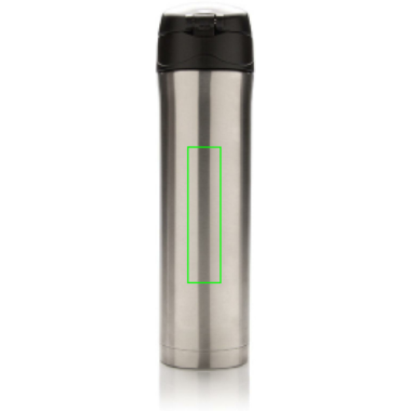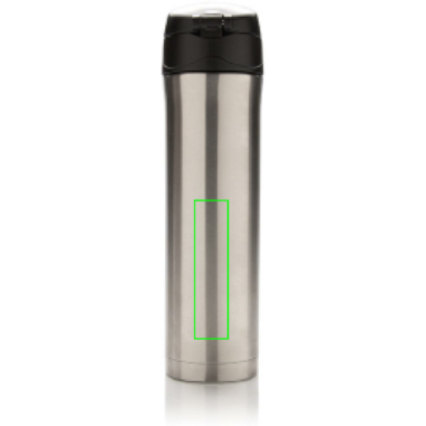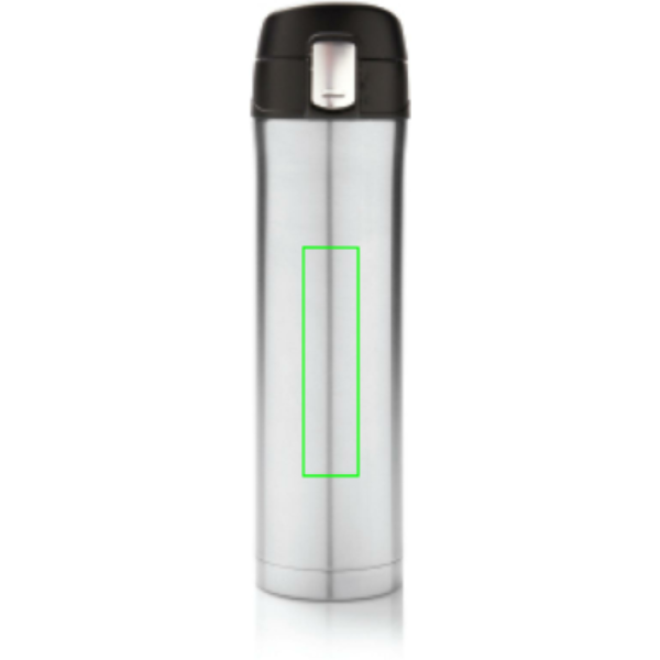 Termos in acciaio inossidabile isolato a vuoto che mantiene le tue bevande calde fino a 5 ore e fredde fino a 15 ore. Il tappo si può bloccare in modo da evitare aperture accidentali. Il tappo è facile da pulire e può essere lavato anche in lavastoviglie. Grazie al sue design potrai bere facilmente e in sicurezza utilizzando una sola mano. Si adatta ai porta bottiglie delle automobili. Capacità 450 ml.