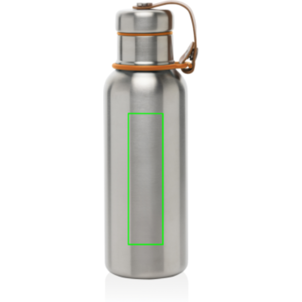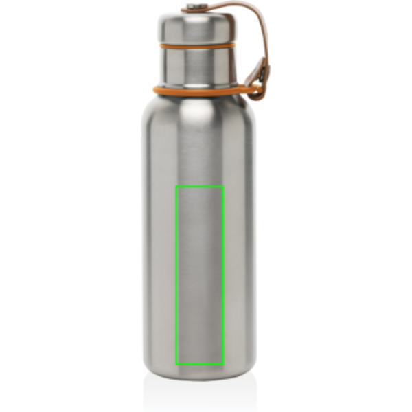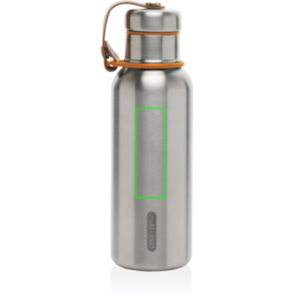 Bottiglia termica in acciaio inossidabile sigillata sottovuoto che mantiene le bevande fredde per 24 ore o calde per 12 ore. Anche il tappo è completamente in acciaio inossidabile, il che significa che l'acqua non entra in contatto con la plastica. Il laccio in finta pelle funge da passante per il trasporto e da dettaglio di design. Lavaggio solo a mano.