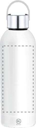 Borraccia termica da 500ml. in acciaio riciclato a doppia parete con tappo che ne facilita il trasporto.