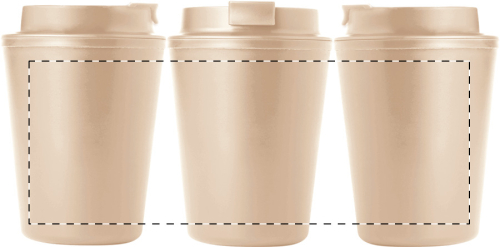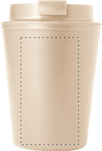 Bicchiere termico da 300 ml. in plastica PP riciclata a doppia parete, con coperchio erogatore.