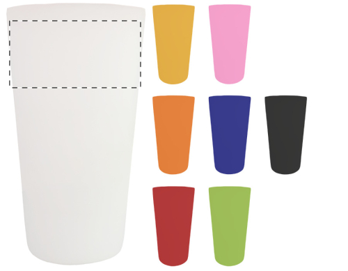 Mug termico da 400ml. in plastica personalizzabile a doppia parete, con tappo erogatore e fascia in silicone. MOQ: 50pz.