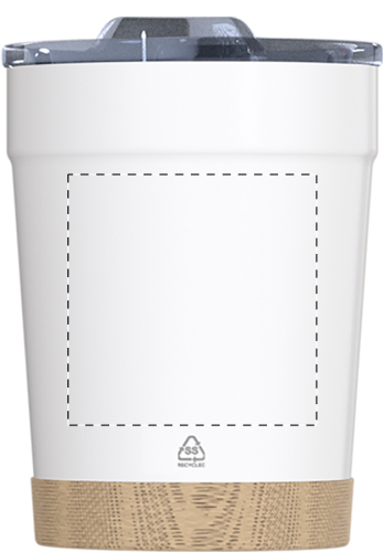 Tazza isotermica da 300ml. a doppia parete, in acciaio inox riciclato con base in bambù e coperchio in plastica AS.