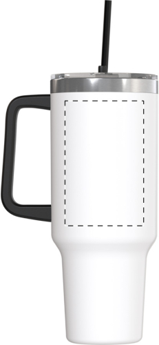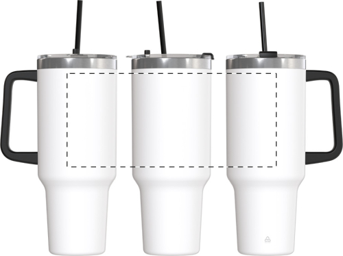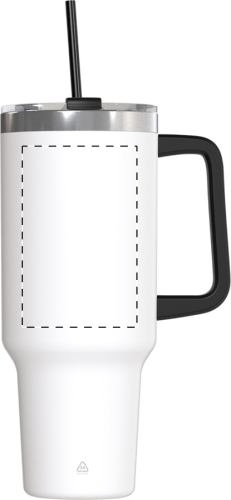 Tazza termica isotermica da 1200 ml. in acciaio riciclato a doppia parete, con coperchio in PS e cannuccia in PP.