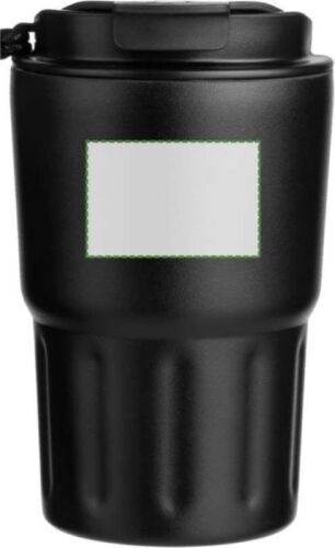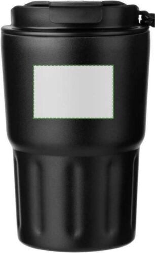 Tazza termica in acciaio inox a doppia parete, rivestimento a polvere, interno in acciaio inox 304 ed esterno in acciaio inox 201, cordino per il trasporto laterale, coperchio in PP, confezionata singolarmente in una scatola in cartone avana, capacità 320 ml