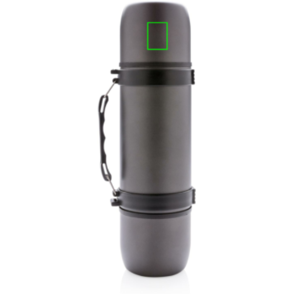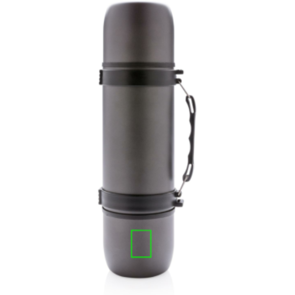Termos a doppio strato in acciaio inossidabile isolato a vuoto. Design elegante con impugnatura e spallacci. Include due tazze. Antigoccia, non va in lavastoviglie. Capacità 700 ml.